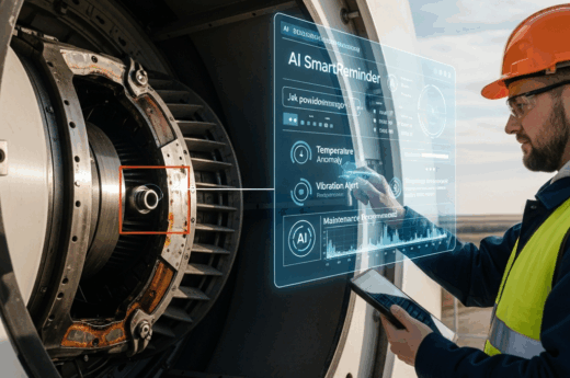 Konserwacja predykcyjna OZE pozwala uniknąć przestojów turbin wiatrowych. Dowiedz się, jak AI SmartReminder monitoruje awaryjne elementy farm wiatrowych.